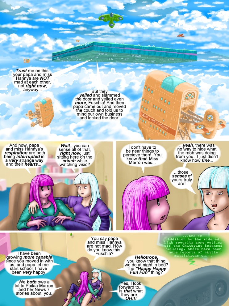 PAGE FOOTNOTES: I was always impressed by how Koko the gorilla, faced with a mysterious new food -which soon became her favorite, invented her own American Sign Language name for watermelon: "Drink Fruit" . Heliotrope, as she gradually encompasses the process of being human in the world, also invents her own words and descriptions...and tends to cling to them, even after being given the proper term. I think she is expressing an increasing individuation through this behavior.