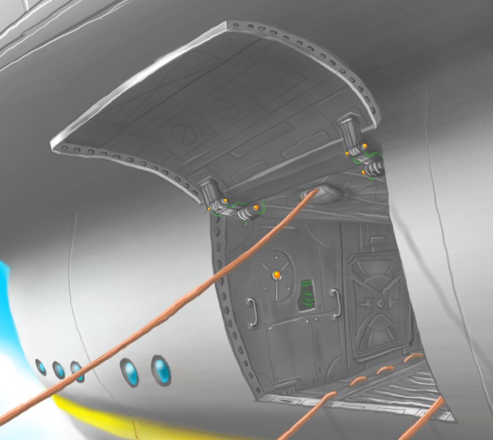 Of note in this Gunship cargo hatch are the mechanisms that make it work.